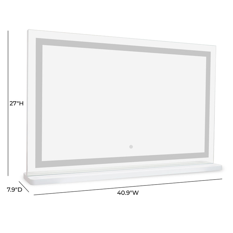 El espejo de tocador Zoé combina el encanto clásico de Hollywood con mejoras modernas, ahora disponible en tamaño jumbo y con una elegante opción de panel LED. Con controles táctiles inteligentes y funciones de memoria, es tu pase entre bastidores para prepararte con estilo.