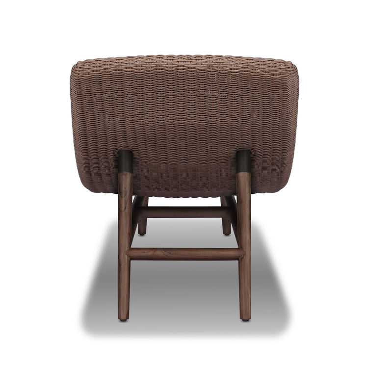 Haz una pose. Basado en una forma vintage, el mimbre para todo clima está sutilmente curvado y se coloca sobre un marco minimalista hecho de teca sólida. Una pieza elegante y una opción de asiento tanto para interiores como para exteriores. Cubra o guarde en el interior durante las inclemencias del tiempo y cuando no esté en uso.