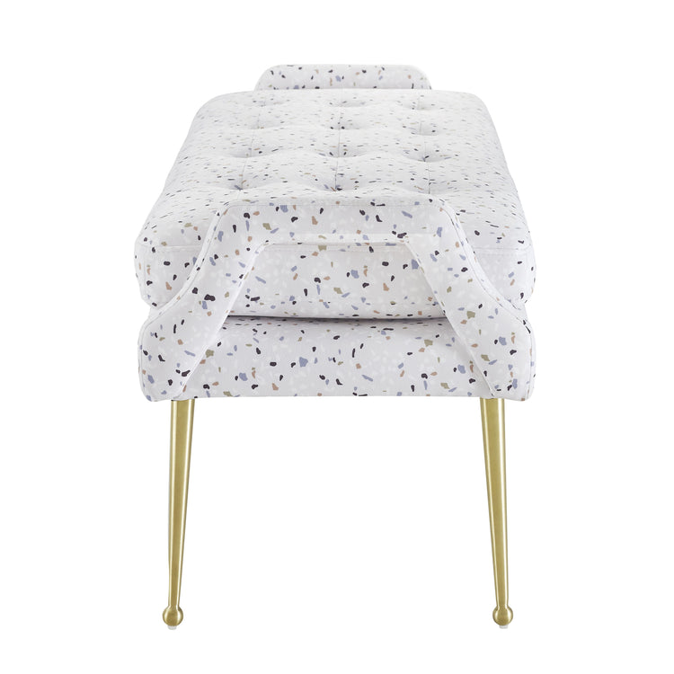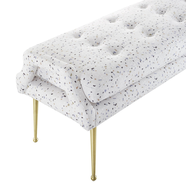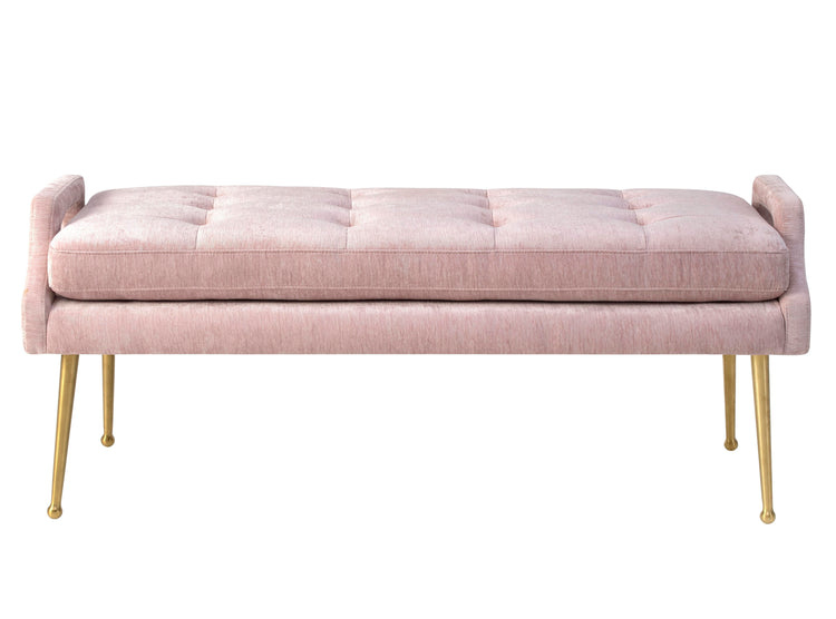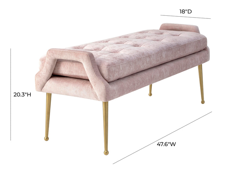 Sea un creador de tendencias con el banco de terciopelo. Con elegantes patas doradas y botones exuberantes, coloque este versátil banco en su entrada, sala de estar o dormitorio. Definitivamente se notará. Disponible en gris, rosa y blanco.