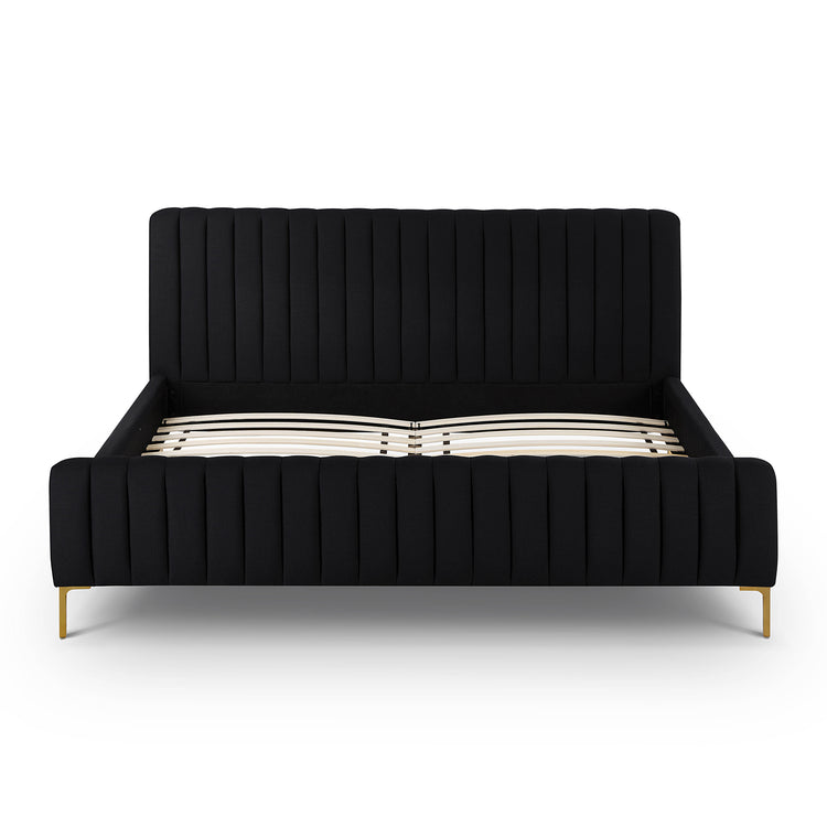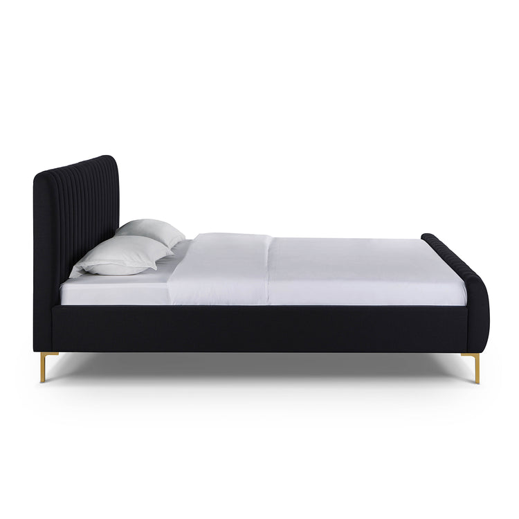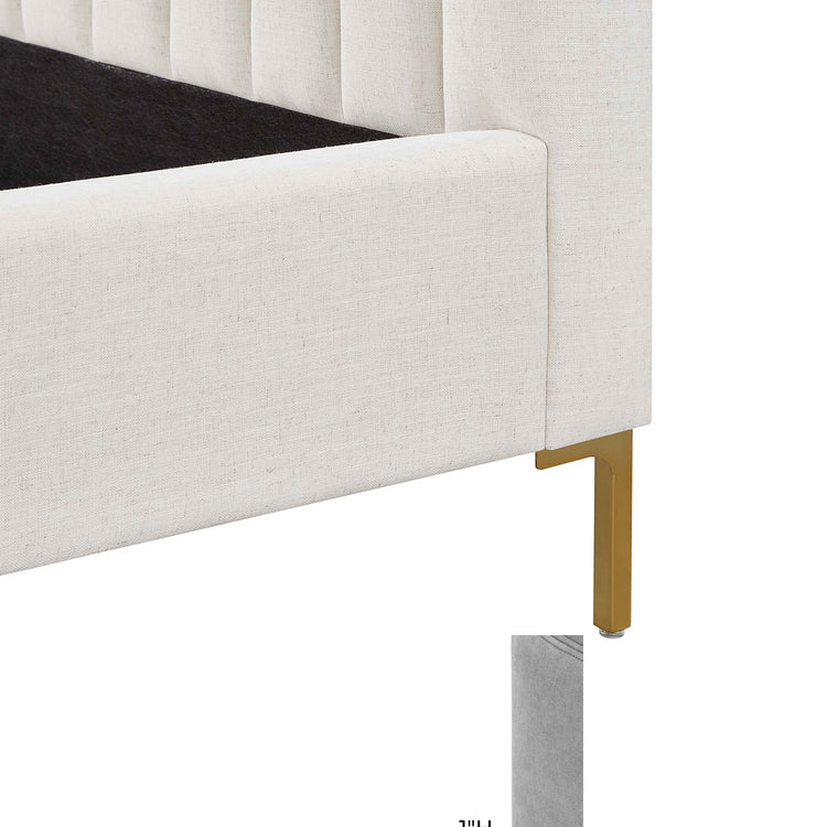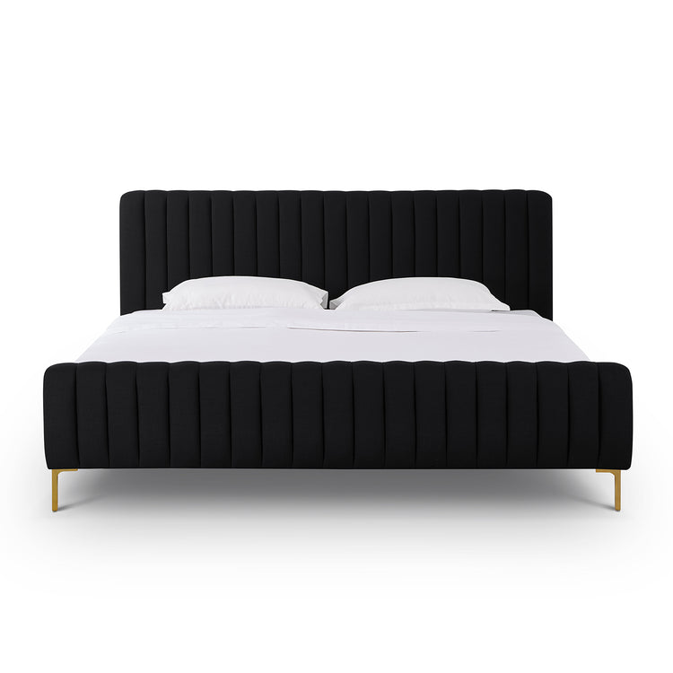No podemos garantizar que sus sueños se hagan realidad, pero al menos podemos ayudarlo a soñar con estilo. La cama King Aliara de lino presenta un diseño glamoroso, capitoné con canales y patas doradas que resaltan sobre la suntuosa tapicería. Disponible en tamaño queen o king y en múltiples opciones de colores y telas.